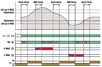 - реле напруги контролю мін. та макс. напруги, обриву фази, збою послідовності фаз та асиметрією