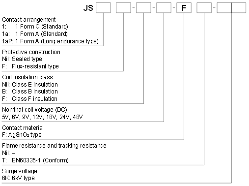 Код котушки Номінальна напруга В DC Опір котушки при 20 °C Ω Допуск опору Робочий діапазон напруги живлення В DC мін. (при 20 °C) макс. (при 70 °C) 5 В 5 69,4 ± 10% 3,5 6,5 6 В 6 100 ± 10% 4,2 7,8 9 В 9 225 ± 10% 6,3 11,7 12 В 12 400 ± 10% 8,4 15,6 18 В 18 900 ± 10% 12,6 23,4 24 В 24 1 600 ± 10% 16,8 31,2 48 В 48 6 400 ± 10% 33,6 62,4