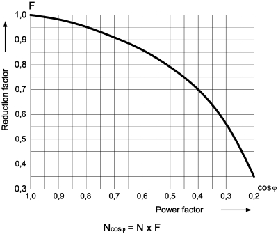 Рис. 1. Коэффициент снижения рабочего тока контактов от cos φ нагрузки