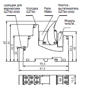 Контактні колодки GZT80 пристосовані для роботи з гребеневою перемичкою ZGGZ80. Перемичка ZGGZ80 з'єднує загальні сигнали входів або виходів, макс. допустимий струм 10 А/250 В AC. Можливість підключення 8 колодок. Кольори перемичок: ZGGZ80-1 сіра, ZGGZ80-2 чорна.
