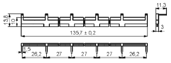 Контактні колодки GZM2 пристосовані для роботи з гребеневою перемичкою ZGGZ4. Перемичка ZGGZ4 з'єднує загальні сигнали входів або виходів, макс. допустимий струм 10 А/250 В AC. Можливість підключення 6 колодок. Кольори перемичок: ZGGZ4-1 сіра, ZGGZ4-2 чорна.