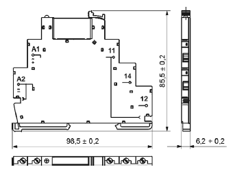 - Інтерфейсне реле PIR6W-1P-... складається з: колодка з гвинтовими затискачами, електронікою PI6W-1P-..., мініатюрне виконавче реле - електромагнітне RM699BV
