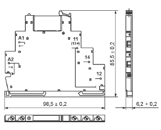 Реле PIR6W-1PS-... призначене для безпосереднього монтажу на рейці 35 мм відповідно до PN-EN 60715. Підключення: макс. перетин монтажного дроту: 1 х 2,5 мм2 / 2 x 1,5 мм2 (1 x 14 / 2 x 16 AWG), довжина зачищеної ділянки монтажного дроту: 9мм, макс. момент затягування монтажного затиску: 0,3 Нм.