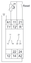 червоний LED ON/OFF - індикація перевищення температуриВимірювальний ланцюг клеми T1-T2 опір ініціалізації <1.5kΩ опір спрацьовування (реле ВИМК.) ≥3.6kΩ опір повернення (реле ВКЛ.) ≤1.8kΩ відключення ні Вхідний ланцюг Номінальна напруга Un 230 В Номінальна частота співвідв. специфікації на модуль живлення Вихідний ланцюг Кількість та тип контактів 2 CO - перекидні Номінальний струм навантаження 5 A / 250 В AC Максимальна комутована потужність 1250 В AC Дані ізоляції Номінальна ударна напруга 4000 В AC Категорія перенапруги III (відповідно до IEC 60664-1)