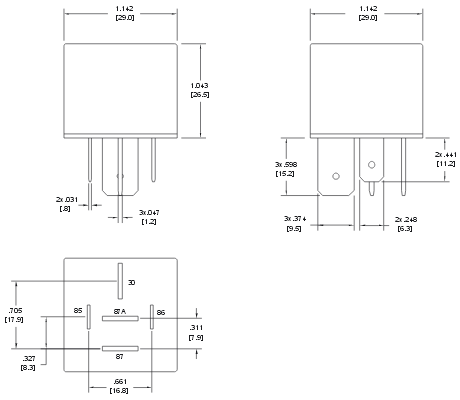 Дані ізоляції Напруга пробою між котушкою та контактами 500 В AC між відкритими контактами 500 В AC Додаткові дані Механічний ресурс > 1 x 107 Електричний ресурс > 1 x 105 80 A, 14 В DC резистивна Температура навколишнього середовища для роботи -40...+85 °C