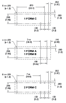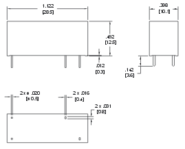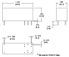 SPST (1 NO, 1 NC)DPDT (2 CO) Матеріал контактів AgSnO2, AgNi, AgNi з покриттям Au Номінальний струм навантаження 10 A / 250 В AC 5 A / 250 В AC Максимальна комутована напруга 240 В DC Максимальна комутована потужність 2500 ВA 1250 ВA Максимальний комутований струм 10 A 5 A Опір контакту < 100 мΩ Дані котушки Номінальна напруга 5 ... 60 В DC Номінальна споживана потужність 0,12 Вт (5 ... 24 В DC), 0,14 Вт (48, 60 В DC) Дані ізоляції Номінальна напруга ізоляції 500 В AC Напруга пробою між котушкою та контактами 5000 В між зазорами 2500 В між струмовводами 1000 В Додаткові дані Механічний ресурс > 107 Електричний ресурс > 105 (8 A / 250 В AC, резистивне навантаження) Температура навколишнього середовища для роботи -40...+85 °C