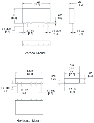 Дані контактів Кількість та тип контактів SPST (1 NO), SPDT (1 CO) Матеріал контактів AgSnO2, AgNi, AgNi з покриттям Au Номінальний струм навантаження 10 A / 250 В AC Максимальна комутована напруга 150 В DC 400 В AC Максимальна комутована потужність 1662 ВA Максимальний комутований струм 6 A Опір контакту < 50 мΩ Дані котушки Номінальна напруга 3 ... 60 В DC Номінальна споживана потужність 0,095 Вт Дані ізоляції Номінальна напруга ізоляції 500 В AC Номінальна ударна напруга 6000 В Напруга пробою між котушкою та контактами 4000 В між відкритими контактами 1000 В Додаткові дані Механічний ресурс > 107 Електричний ресурс > 105 (5 A / 250 В AC, резистивне навантаження) Температура навколишнього середовища для роботи -40...+85 °C