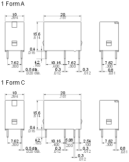 500 В AC, 30 ВтМаксимальний комутований струм NO: 5 A, NC: 2 A NO: 10 A, NC: 3 A Опір контакту < 100 мΩ Дані котушки Номінальна напруга 5 ... 24 В DC 5 ... 48 В DC 5 ... 24 В DC 5 ... 48 В DC Номінальна споживана потужність 0,2 Вт 0,4 Вт 0,2 Вт 0,4 Вт Дані ізоляції Номінальна напруга ізоляції 500 В DC Номінальна ударна напруга 8000 В Напруга пробою між котушкою та контактами 4000 В між струмовводами 1000 В 750 В 1000 В 750 В Додаткові дані Механічний ресурс > 107 Температура навколишнього середовища для роботи -40...+70 °C (ізоляція класу E)