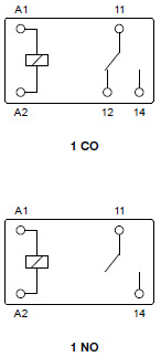 Дані контактів Кількість та тип контактів 1 CO, 1 NO Матеріал контактів AgSnO2 Номінальний струм навантаження 1 CO: 5 A / 5 A (NO/NC) / 250 В AC