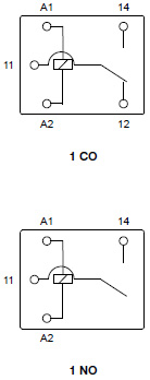 Дані контактів Кількість та тип контактів 1 CO, 1 NO Матеріал контактів AgSnO2 Номінальний струм навантаження 1 CO: 10 A / 7 A (NO/NC) / 250 В AC