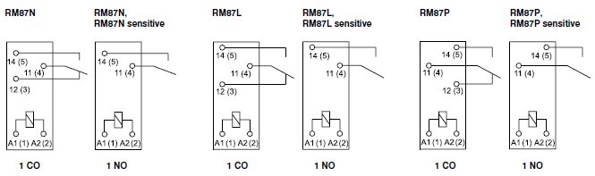Реле RM87L, RM87L sensitive, RM87P, RM87P sensitive призначені для: