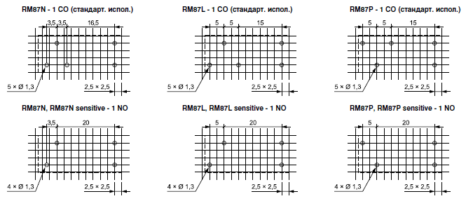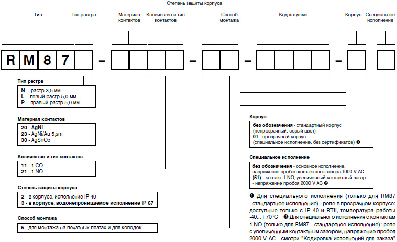 - Котушка AC/DC (стандартні RM87), котушки DC високочутливі (RM87 sensitive)