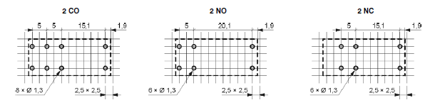 - для контактних колодок: Ø 1,5 + 0,1 мм
