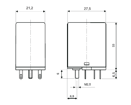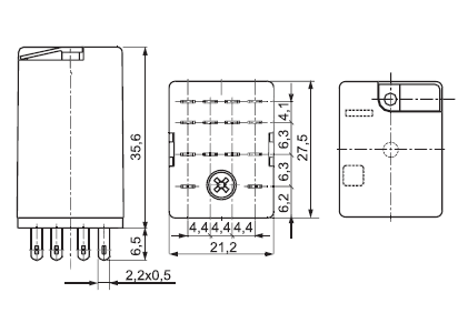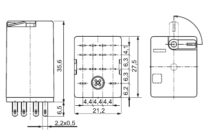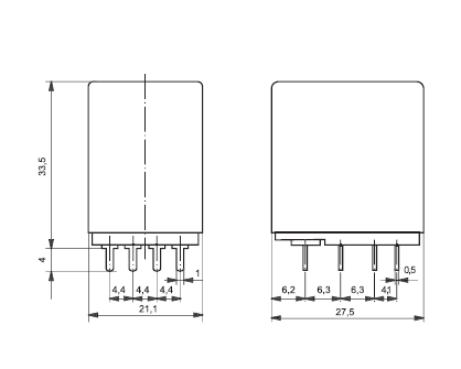 Виводи реле для монтажу на друкованих платах: 0,5 x 1 мм