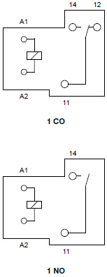 Дані контактів Кількість та тип контактів 1 CO, 1 NO Матеріал контактів AgSnO2, AgCdO Номінальний струм навантаження 1 CO: 40 A / 30 A (NO/NC) / 240 В AC 1 NO: 40 A / 240 В AC 1 CO: 40 A / 30 A (NO/NC) / 30 В DC 1 NO: 40 A / 14 В DC Максимальна комутована напруга 300 В AC 110 В DC Максимальна комутована потужність 1 NO: 9600 ВА / 7200 ВА (NO/NC) 1 NO: 9600 ВА Максимальний комутований струм 40 А Опір контакту < 30 мΩ Дані котушки Номінальна напруга 12...220 В AC 50/60 Гц 5...110 В DC Номінальна споживана потужність 2,0 Вт AC 0,9 Вт DC Дані ізоляції Напруга пробою між котушкою та контактами 4 000 В AC контактного зазору 1 500 В AC Додаткові дані Механічний ресурс 107 Електричний ресурс 105 1 CO: 40 A / 30 A (NO/NC), 240 В AC 1 NO: 40 A, 240 В AC 105 1 CO: 40 A / 30 A (NO/NC), 30 В DC 1 NO: 40 A, DC 30 В Температура навколишнього середовища для роботи -55...+100 °C