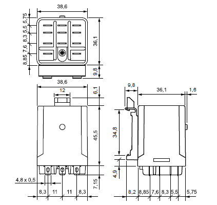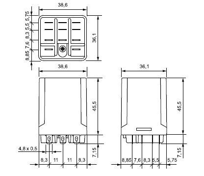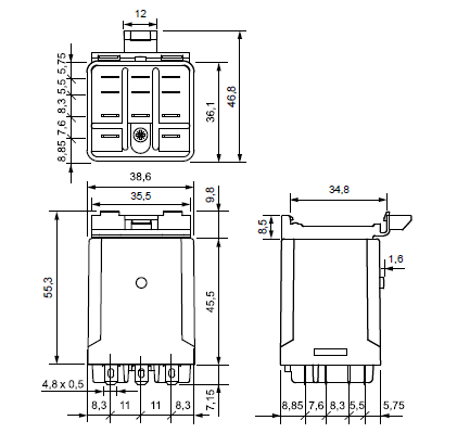 Габаритні розміри - RUC facton 4,8 x 0,5 - виконання для контактних колодок (стандартне)