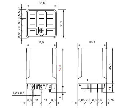 - Монтаж: у колодках; на рейці 35 мм; на панелі; для друкованих плат