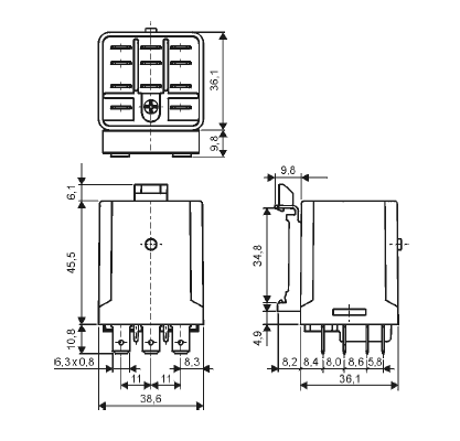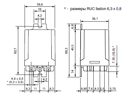 Габаритні розміри - RUC facton 4,8 x 0,5 (6,3 x 0,8) - виконання з монтажними кріпленнями в частині корпусу