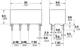 Дані контактів Кількість та тип контактів 2 CO Матеріал контактів Ag з покриттям Au Номінальний струм навантаження 2 A / 30 В DC Максимальна комутована напруга 220 В DC 250 В AC Максимальна комутована потужність 60 Вт (DC) 62.5 В A (AC) (резистивне навантаження) Максимальний комутований струм 2 A Опір контакту < 50 мΩ Дані котушки Номінальна напруга 1,5 ... 48 В DC Номінальна споживана потужність 0,2 Вт (1.5 ... 24 В DC), 0,3 Вт (48 В DC) Дані ізоляції Номінальна напруга ізоляції 500 В DC Номінальна ударна напруга між котушкою та контактами 1500 В Напруга пробою між котушкою та контактами 1000 В з контактним зазором 1000 В між струмовводами 750 В Додаткові дані Механічний ресурс > 106 Електричний ресурс > 5 x 105 (1 A / 30 В DC), 105 (2 A / 30 В DC) Температура навколишнього середовища на роботу -40...+70 °C
