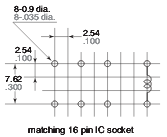 - Корпус типу DIP-2C, відповідає роз'єму ІС 16 контактів
