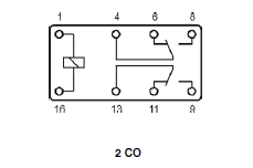 Дані контактів Кількість та тип контактів 2 CO Матеріал контактів AgPd/Au 0,2 µm Номінальний струм навантаження 1 A / 120 В AC 2 A / 24 В DC Максимальна комутована напруга 120 В AC Максимальна комутована потужність 120 ВA Максимальний комутований струм 2 A Опір контакту < 100 мΩ Дані котушки Номінальна напруга 3 ... 24 В DC - чутливе виконання