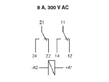Дані контактів Кількість та тип контактів 2 CO Матеріал контактів AgNi Номінальний струм навантаження 8 A / 250 В AC 8 A / 24 В DC Максимальна комутована напруга 440 В AC Максимальна комутована потужність 2000 ВA Максимальний комутований струм 8 A Опір контакту < 100 мΩ Дані котушки Номінальна напруга 12 ... 230 В AC 50/60 Гц 12 ... 110 В DC Номінальна споживана потужність 0, 75 ВA AC 0,4 ... 0,48 Вт DC Дані ізоляції Напруга пробою між котушкою та контактами 5000 В AC контактного зазору 1000 В AC між струмовводами 2500 В AC Додаткові дані Механічний ресурс >3 x 107 Електричний ресурс >105 8 A, AC 250 В Температура навколишнього середовища для роботи AC: -40...+70 °C DC: -40...+85 °C