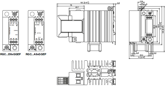 Розташування клем та габаритні розміри - RGС...40GGEP, RGС...42GGEP
