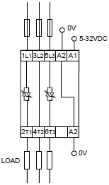5 V AC/DCВыходная цепь Номинальный ток нагрузки 3 x 25 A AC