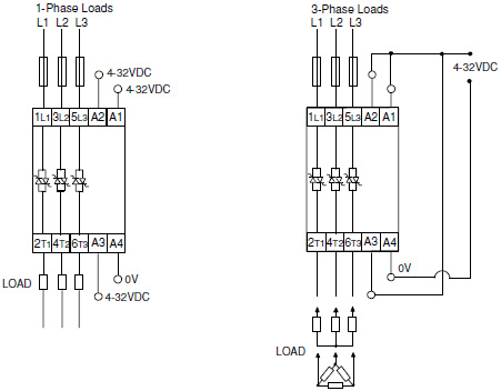 For 3-Phase control, A1, A2 and A3 can be connected together to switch all three poles simultaneously.